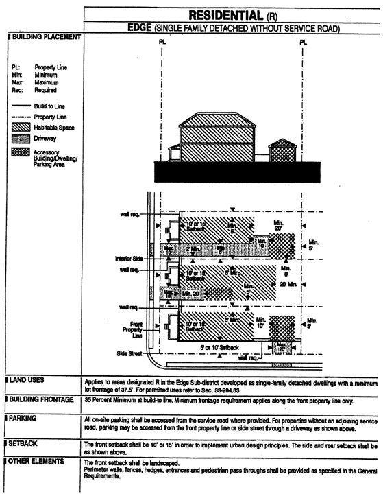 Unless otherwise provided by the Building Placement and Design Parameters in Section 33-284.85 of this Code, the following front and side street setbacks shall be required within the PECUC: