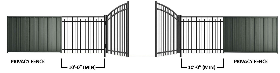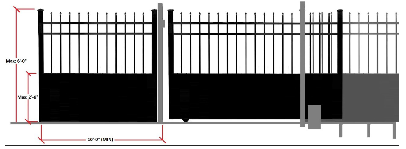 Height limitation. The height of fences, walls, and hedges shall not exceed two and one-half feet in height within ten feet of the edge of driveway leading to a public right-of-way, except that in the R district a fence may be permitted up to the maximum permitted height providing such fence is a maximum 25 percent opaque, and no other structures or portions of the fence, wall interferes with the safe distance visibility triangle.
