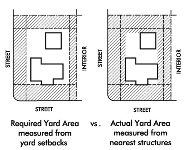 Yard means an open space on the same lot with a building or structure, unoccupied and unobstructed from the ground upward, except as may be specifically provided in this chapter. Yards are measured perpendicular from the respective property lines and street lines.