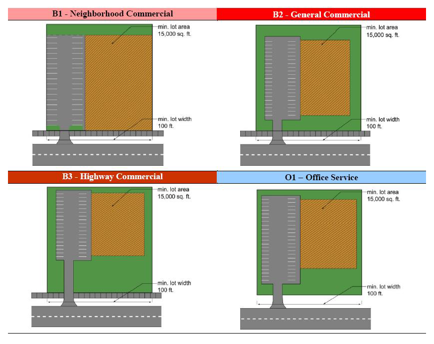 B3 Highway Commercial District. The uses in the B3 Highway Commercial District will be more automotive oriented and serve a market that includes the traveling public. The permitted uses would be located near highway interchanges and are generally not appropriate immediately adjacent to residential zoning districts. Special attention must be given to site layout, vehicular circulation, building design and buffering from other nearby uses.