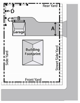 Areas in the required front yard or street side yard setbacks.
