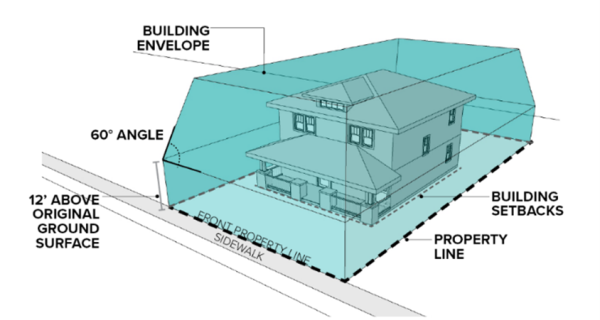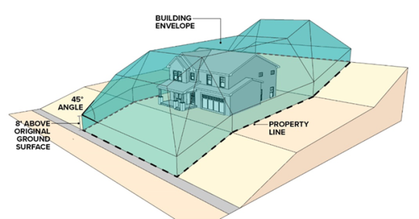 Figure 18.36.5 R-1-8, R-1-10, R-1-15, and R-1-21 Building Envelope
