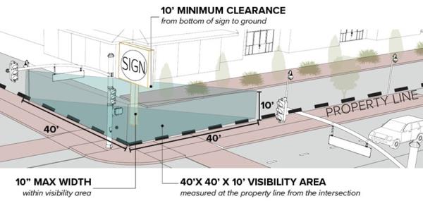 | Construction/ development Sign for Multiple-Household developments of more than 20 units | 10’ vertical and 20’ horizontal | 12' | • Must be on the development site. • Located on private property. Minimum of 5' from the public ROW. | One per development or subdivision. | • All signs must be approved by the Planning Director for a period not to exceed one year. • Approval may be renewed by the Planning Director. |