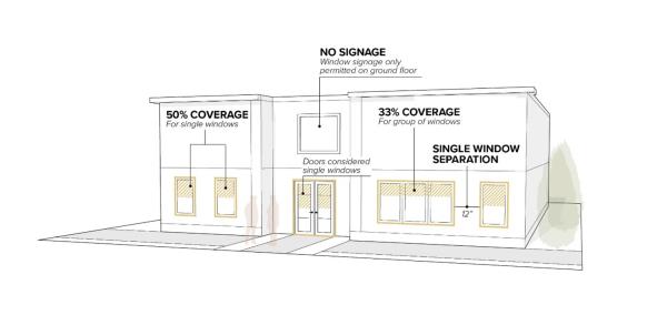 Window signs are subject to the following standards, as illustrated in Figure 18.65.2: