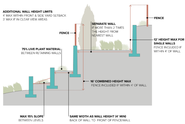 The purpose of this chapter is to promote the use of high-quality materials in fences and retaining walls, while providing privacy, safety and security for individual properties and pedestrians through design, height, materials, and placement.