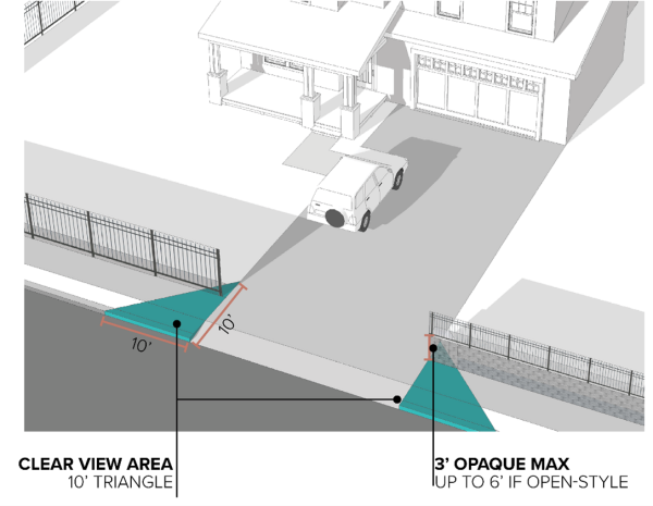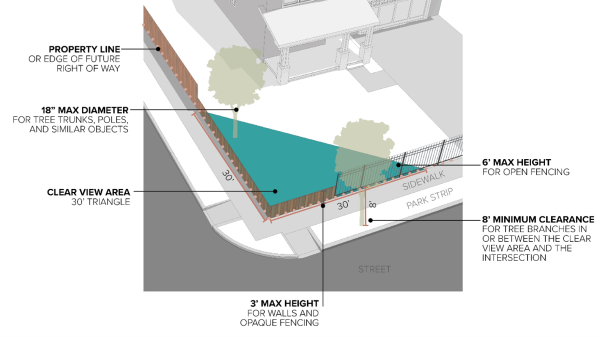 Fences, trees, utility poles, standard mailboxes approved by the U.S. Postal Service, and street signage may be located within the clear view area provide that: