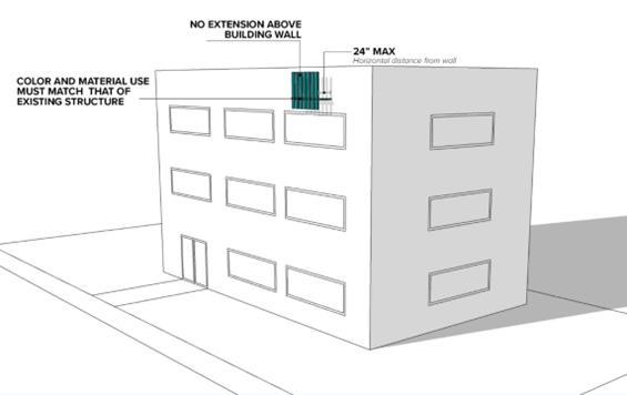 Wall-mounted wireless telecommunication facilities shall satisfy the following standards, as depicted in Figure 18.75.4: