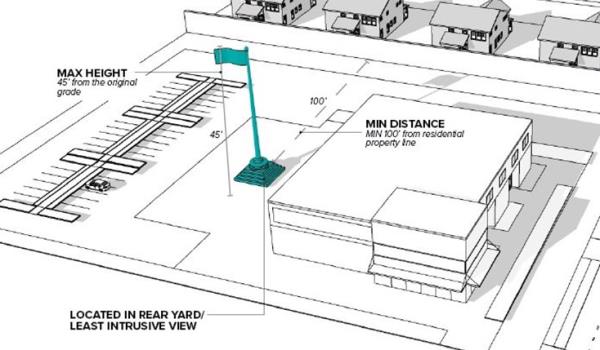 Figure 18.75.3, Commercial Transmission Equipment in a Residential or Agricultural Zone Illustration