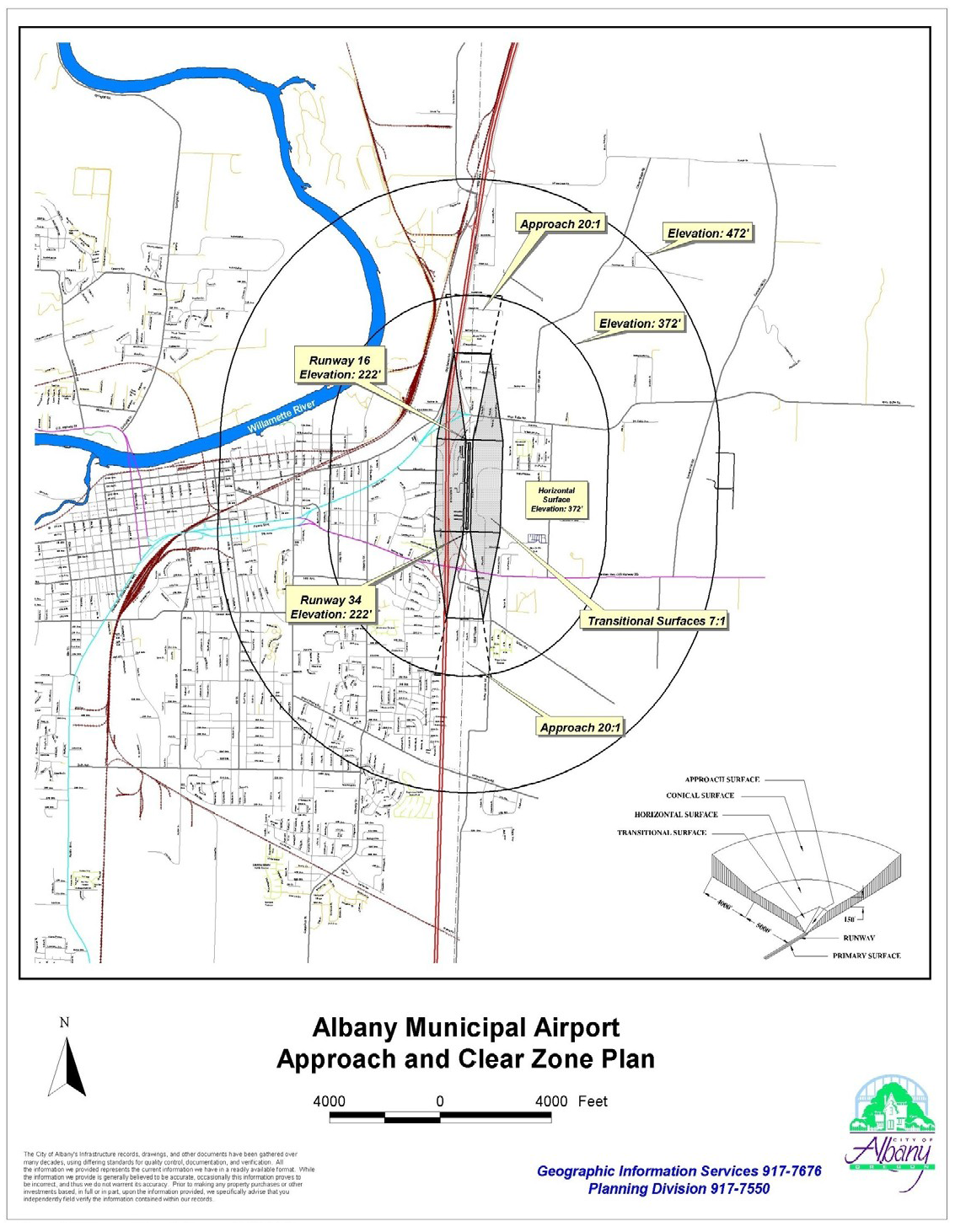 The purpose of the Airport Approach Overlay (AAO) Zone is to apply additional development standards to properties that lie within the air approaches to the Albany Airport. These development requirements are intended to prevent establishment of air space obstructions in air approaches.