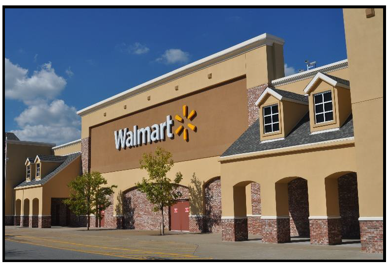 Storefronts or large display windows should be used at the street level on the main façade and secondary elevations, especially on facades oriented to pedestrian areas, on all commercial buildings including large-scale, big-box developments.