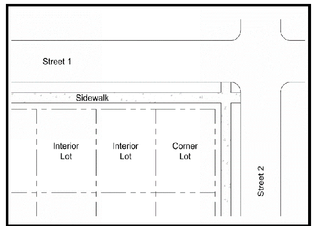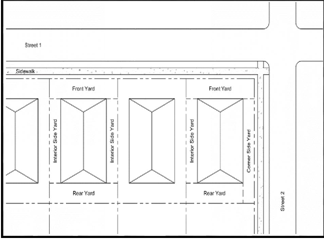 Yard, interior side: A side yard that does not abut a street right-of-way. (See figure 13: yards).