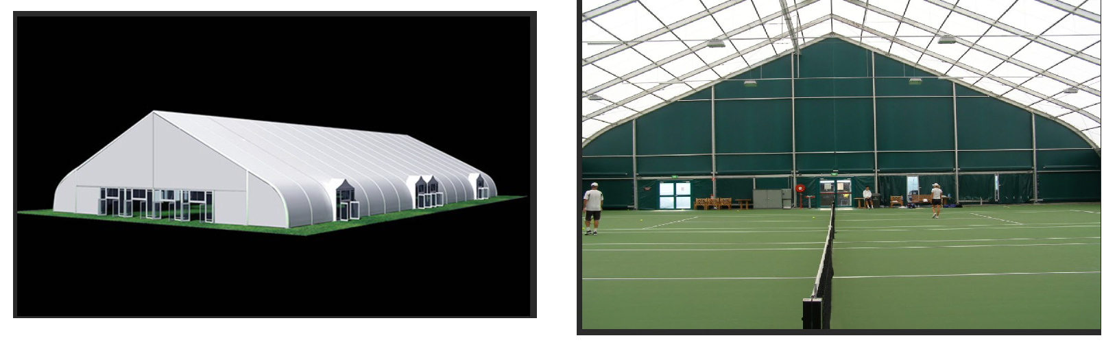 Dome membrane-covered frame-supported structure: A non-pressurized dome structure with architectural fabric envelope supported by steel (or other metal) framework, with no columns or support beams within the internal floor space. Can be designed for permanent, seasonal, or temporary insulation. Designed, engineered, and constructed to meet or exceed all local wind speed and snow load requirements and conform with applicable International Building Code.