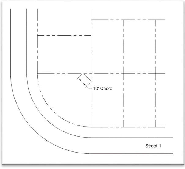 Yard, rear: A yard extending between the side lot lines for the required minimum dept, as specified by the zoning district in which such lot is located, measured perpendicular to the rear lot line (see figure 13: yards). In the case of an irregular or triangular shaped lot, the rear lot line shall be deemed to be a line ten feet in length, within the lot, which is parallel to and at a maximum distance from the front lot line.( See figure 11: rear lot line chord for irregular lots.)