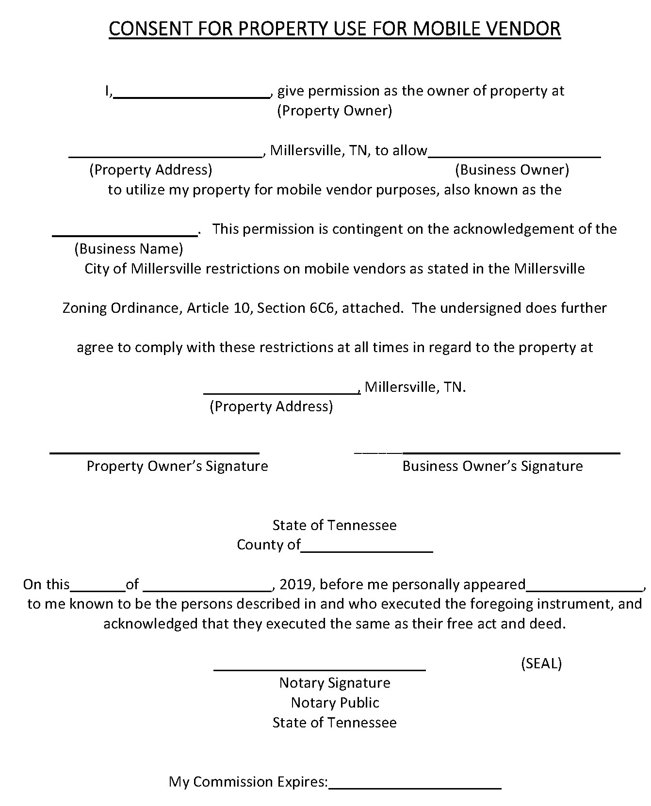 CONSENT FOR PROPERTY USE FOR MOBILE VENDOR TEMPLATE