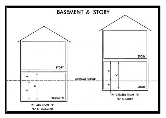 Basement: That portion of a building which is partly or wholly below grade but so located that the vertical distance from the average grade to the floor is greater than the vertical distance from the average grade to the ceiling. A basement shall not be counted as a story. (See Figure 2-1).