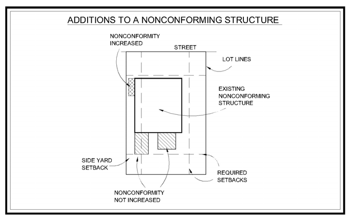 No such non-conforming structure may be enlarged or altered in a way which increases its non-conformity, but any structure or portion of it may be altered in a manner that does not increase or which decreases its non-conformity. Figure 7-1 identifies the type of changes that constitute an increase in non-conformity.