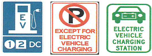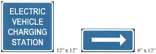 Signs may be located to guide motorists to the charging station space(s). If such signs are not visible from the public street, they are exempt from the sign standards and permit requirements. (See example below of typical signage.)