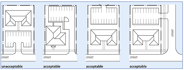 For single-family - detached and attached and two-family dwellings where there is alley access, all vehicle parking areas must be accessed from the alley and all vehicle parking areas must be located in the rear yard.