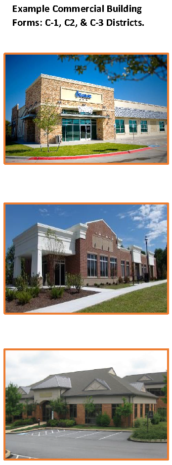 Examples of D-CM Mixed-Use and Commercial Development Architectural/Design Forms.