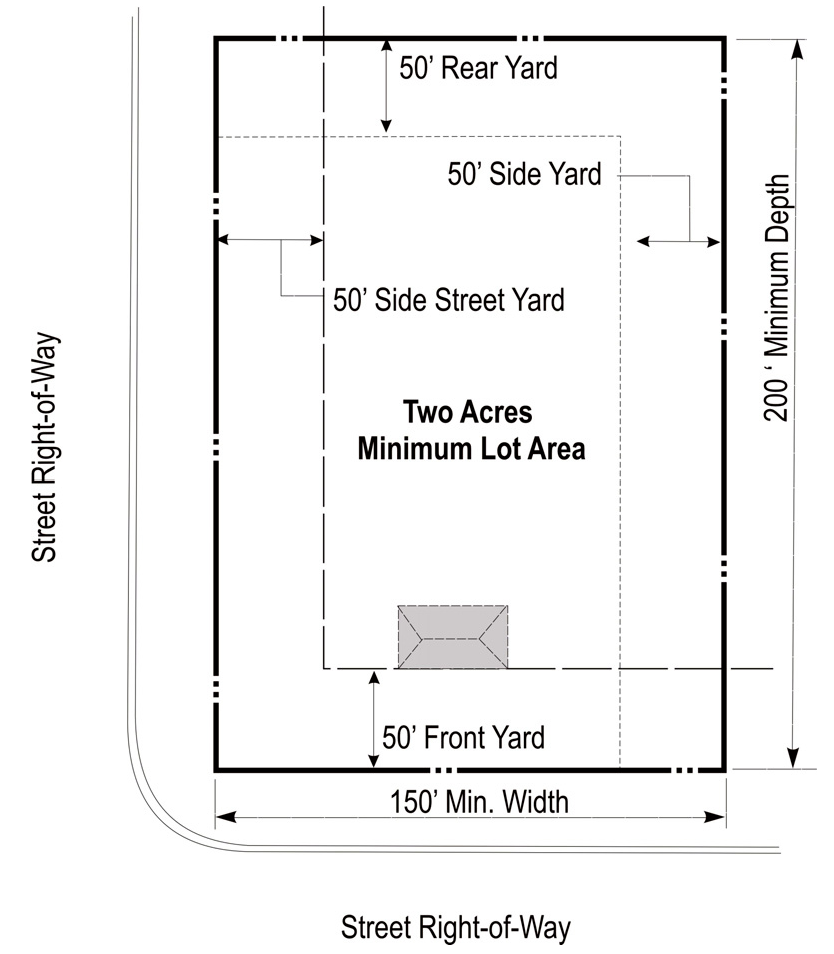 GENERAL PURPOSE AND DESCRIPTION: The agricultural district promotes a single main dwelling unit on a lot of two acres or more. It is appropriately used for agricultural purposes but is expected to become an urban land area in the future. Therefore, the agricultural activities conducted in the agricultural district should not be detrimental to urban land uses and intensity of use permitted in this district is intended to encourage and protect agricultural uses until urbanization is warranted and the appropriate change in district classification is made.