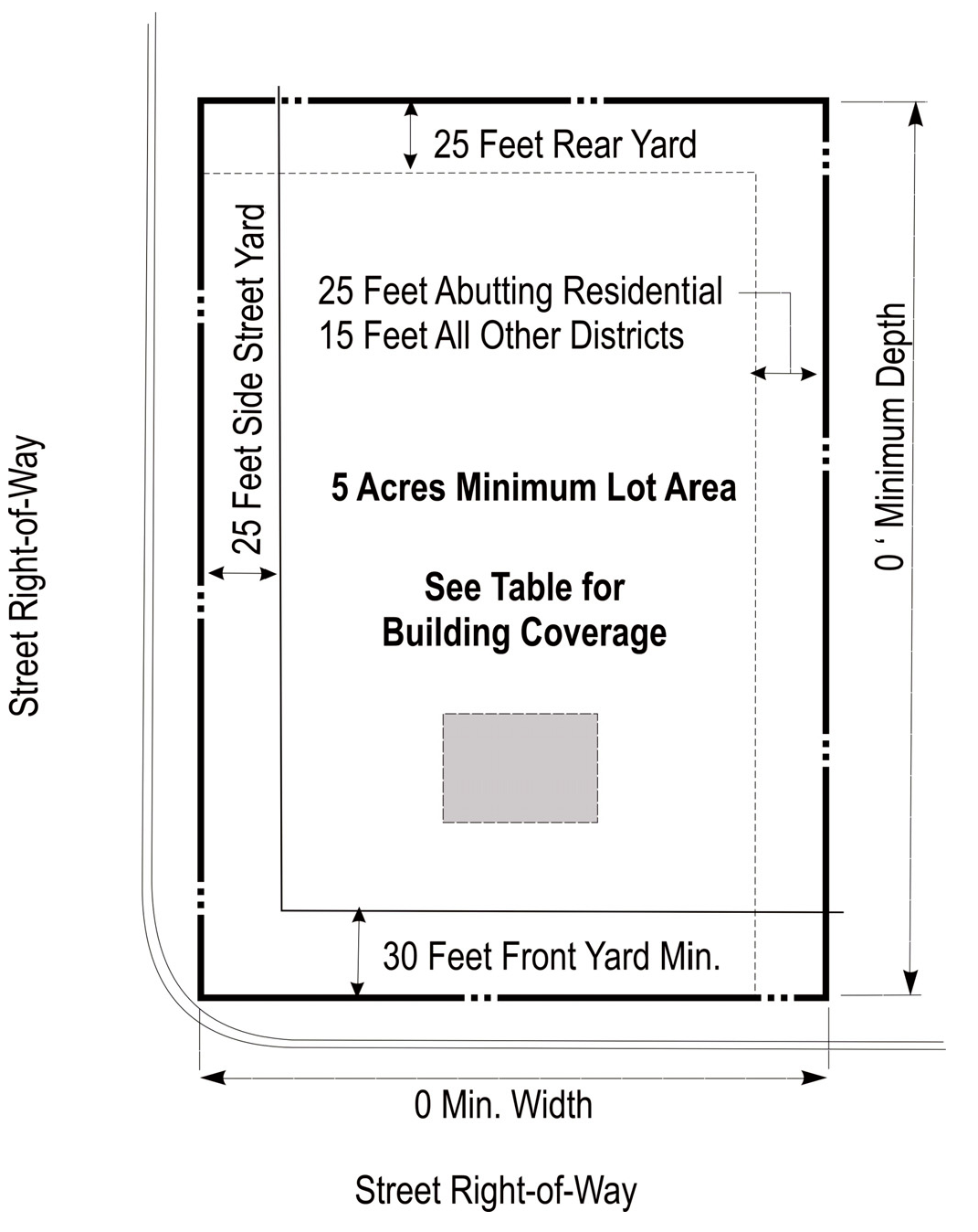 DENSITY, AREA, YARD, HEIGHT, AND LOT COVERAGE REQUIREMENTS: The requirements regulating the minimum lot size, minimum yard size (front, side, and rear), maximum building height (stories and feet), and maximum lot coverage, and minimum floor area, as it pertains to this district, shall conform with the provisions provided in the area requirements table for the LI zoning district.