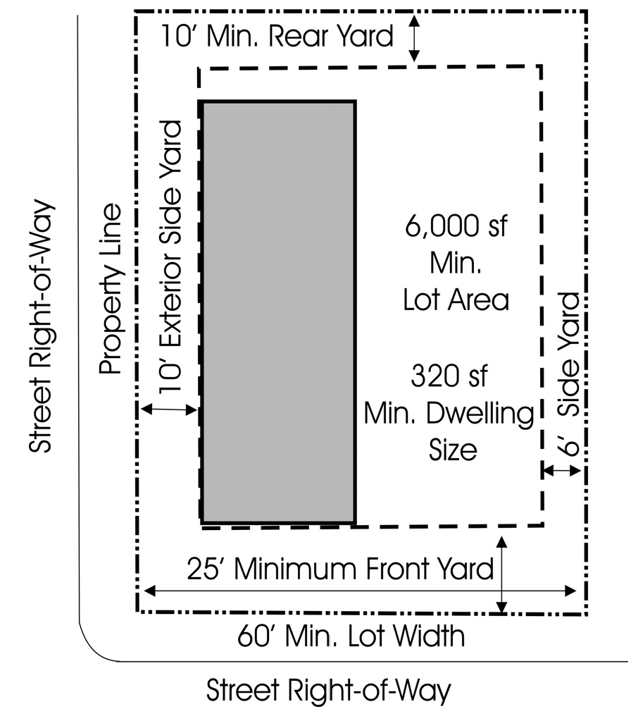 DENSITY, AREA, YARD, HEIGHT, AND LOT COVERAGE REQUIREMENTS: The requirements regulating the minimum lot size, minimum yard size (front, side, and rear), maximum building height (stories and feet), and maximum lot coverage, and minimum floor area, as it pertains to this district, shall conform with the provisions provided in the density, area, yard, height, and lot coverage requirements for the GR zoning district.