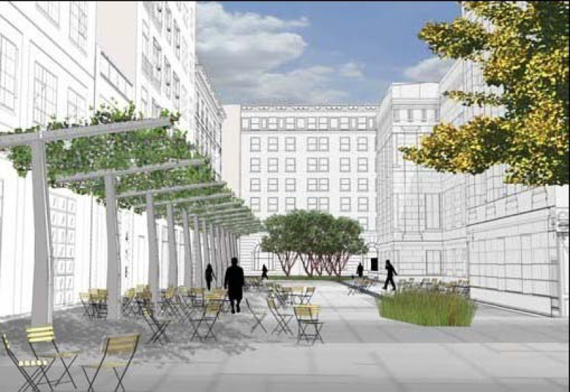 by the pedestrian, and that includes walks, lawns and trees. As opposed to a "plaza",