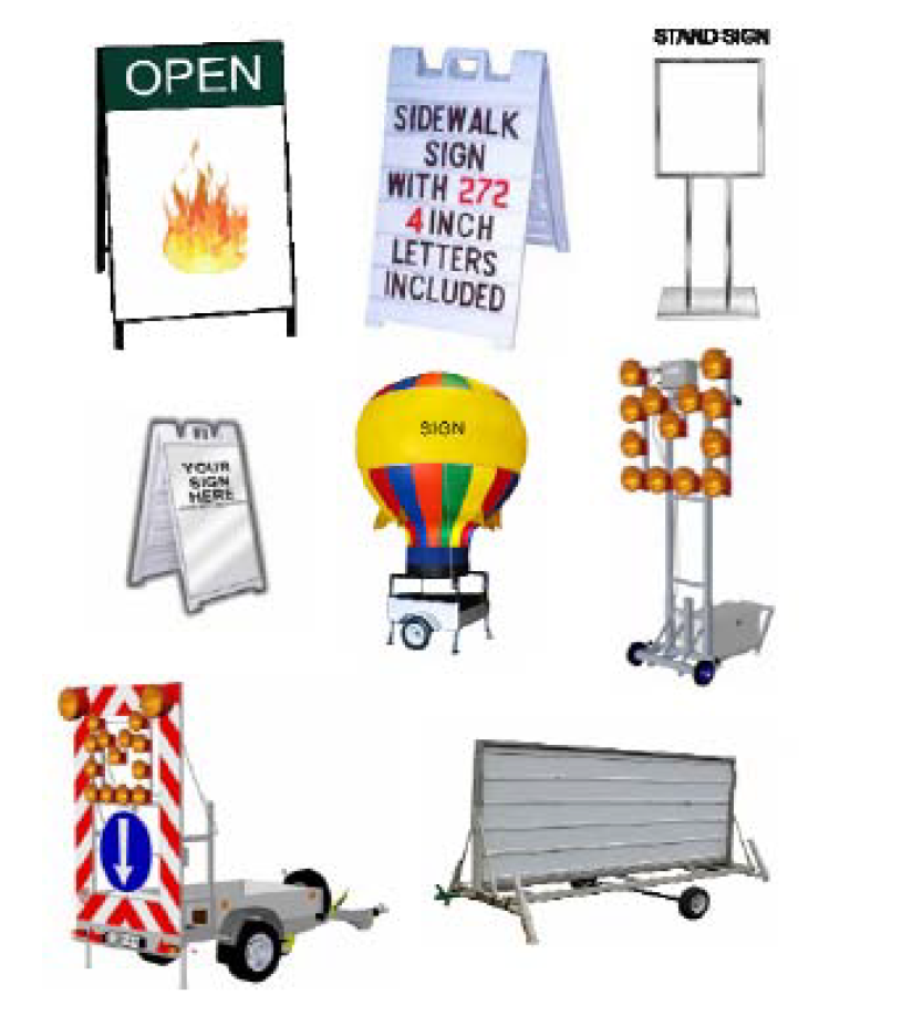 including, but not limited to, the following: signs designed to be transported by