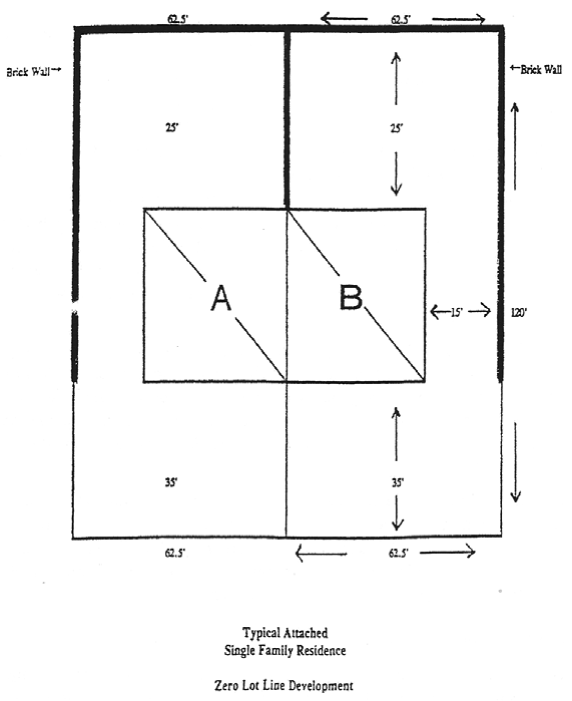These homes must be grouped together in a centralized section of the development and separated from the conventional single-family homes by brick privacy walls between the properties as follows: