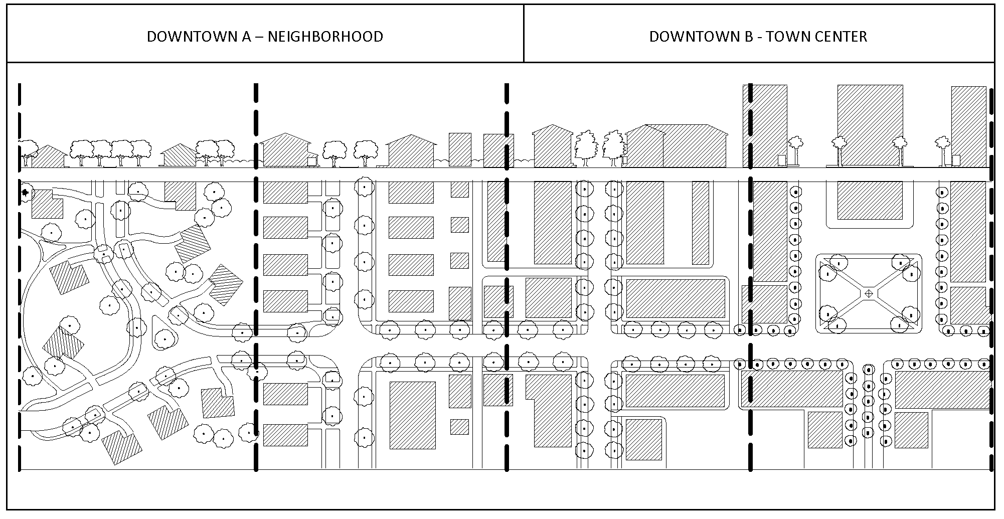 Streets shall be designed as the main public space of the Town and shall be scaled to the pedestrian.