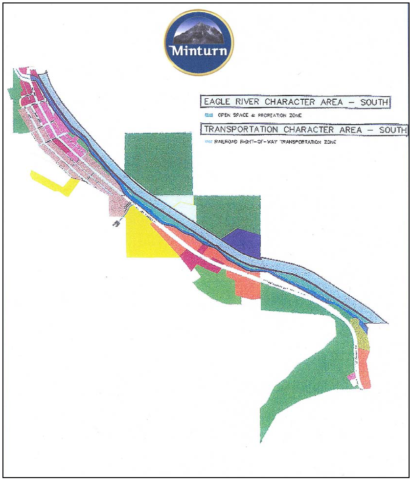 The linear Railroad Right-of-Way/Transportation Zone extends the entire length of the Town. The right-of-way varies in width from two hundred (200) to four hundred (400) feet. Near the north end of the Town, the right-of-way widens and becomes the rail yard, which is part of the Game Creek Character Area.