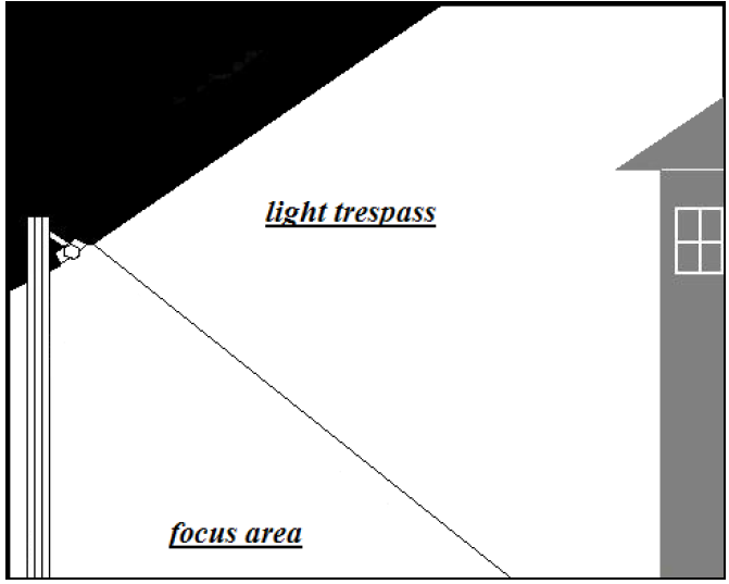 Light trespass means light falling on the property of another or the public right-of-way, when it is not required to do so.