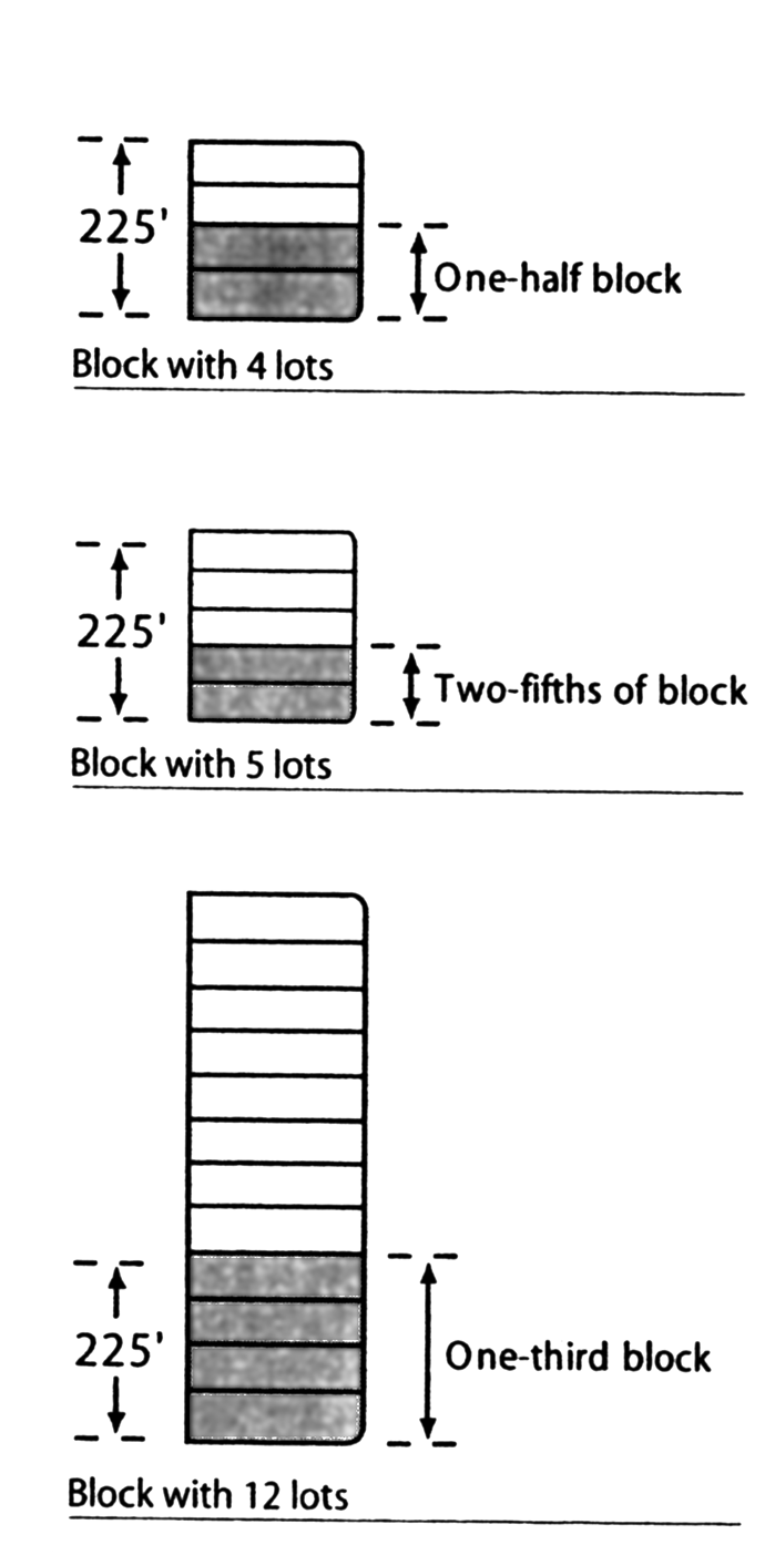 225 feet, whichever is less. An exception shall be made where more than half a block
