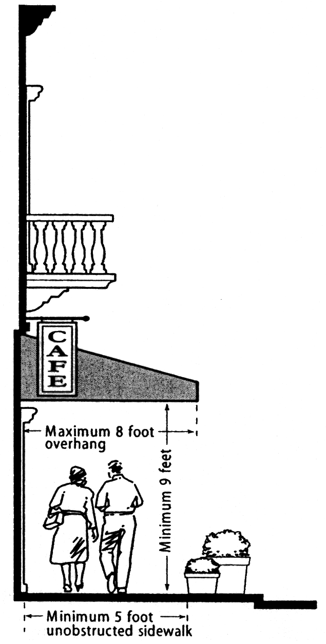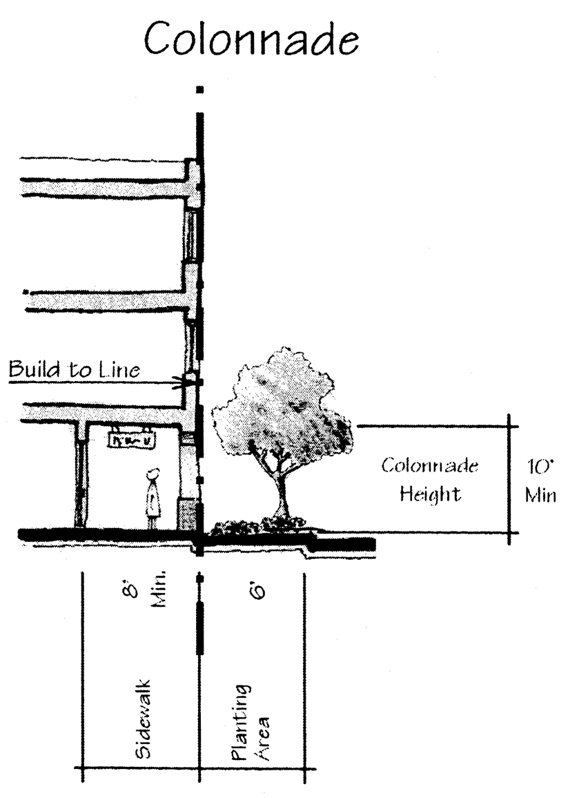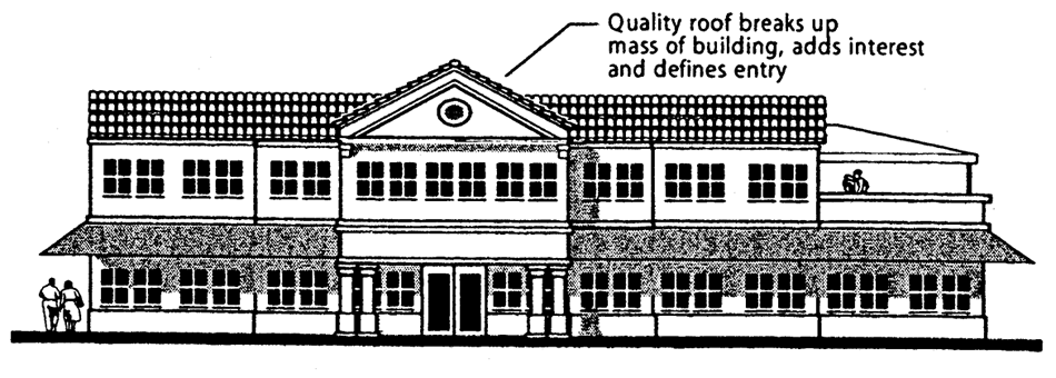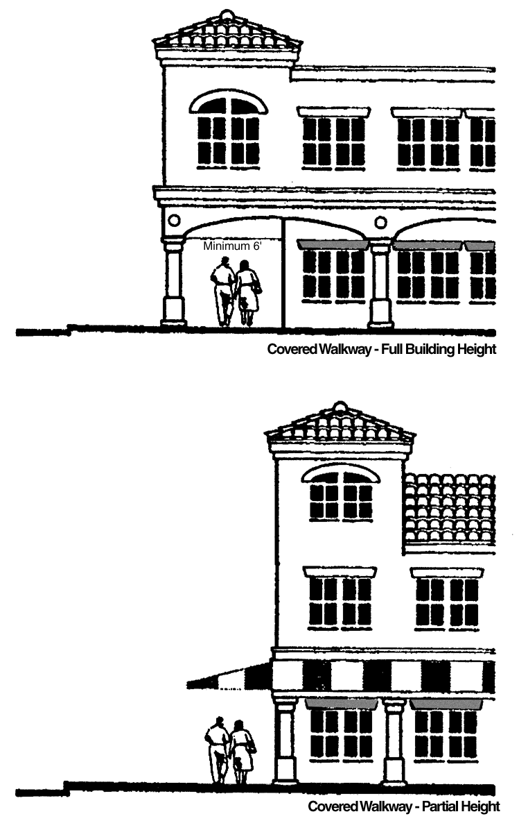 arcades, and overhanging eaves are particularly appropriate at pedestrian pathways