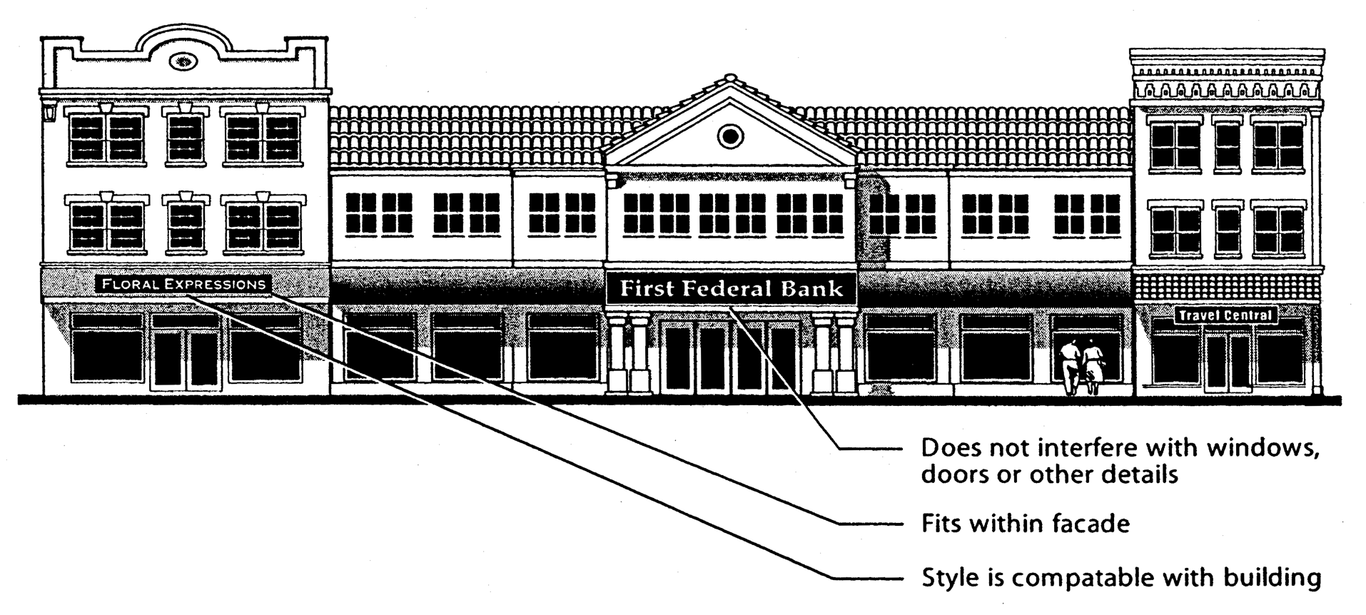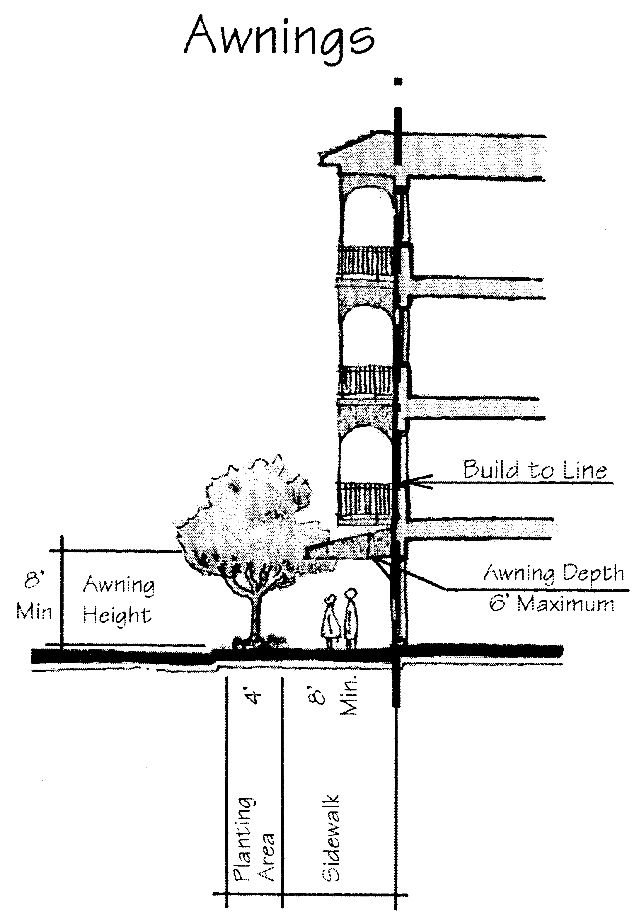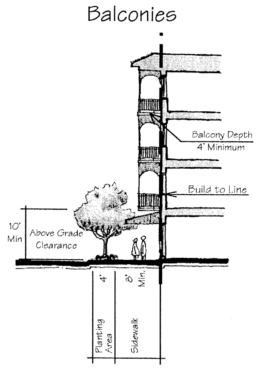 arcades, and overhanging eaves are particularly appropriate at pedestrian pathways
