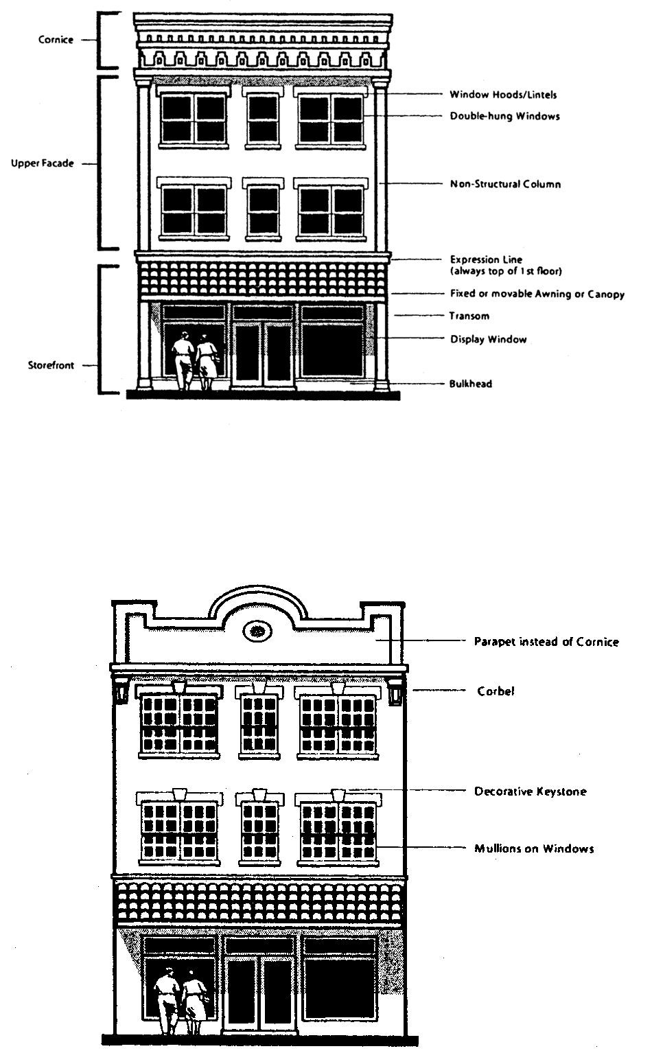 or other architectural feature. False fronts or parapets create an insubstantial appearance