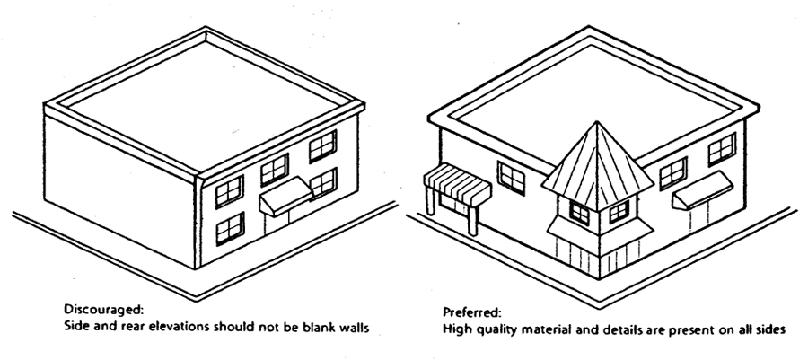 712.7.4. Building elevations. Although the primary aesthetic emphasis shall be on the main facade(s), all building