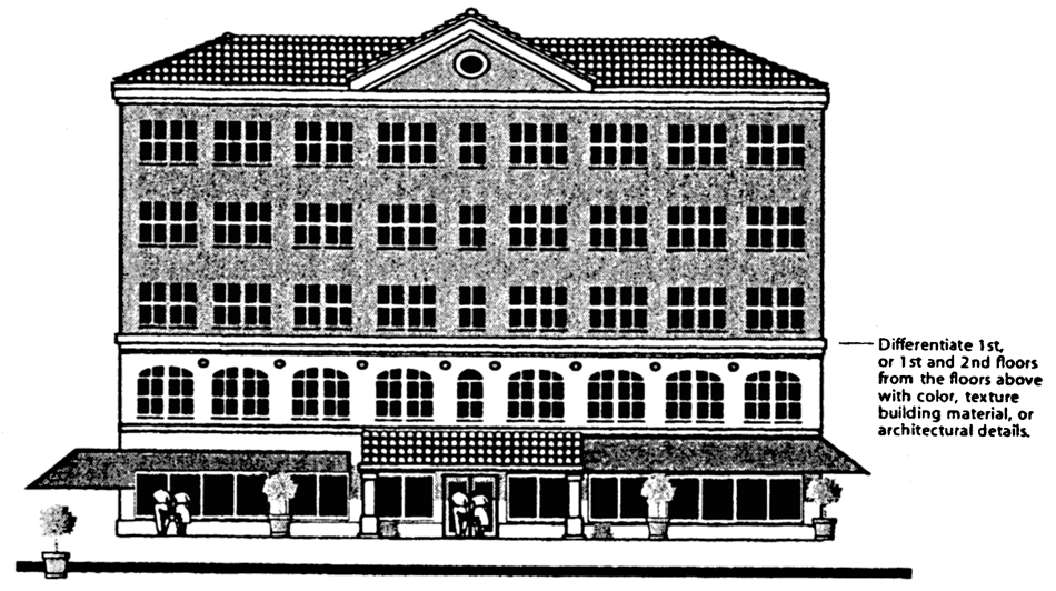 and shall be avoided. Stepping the building can also reduce the apparent scale of