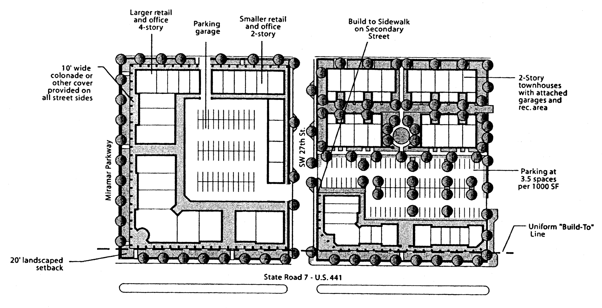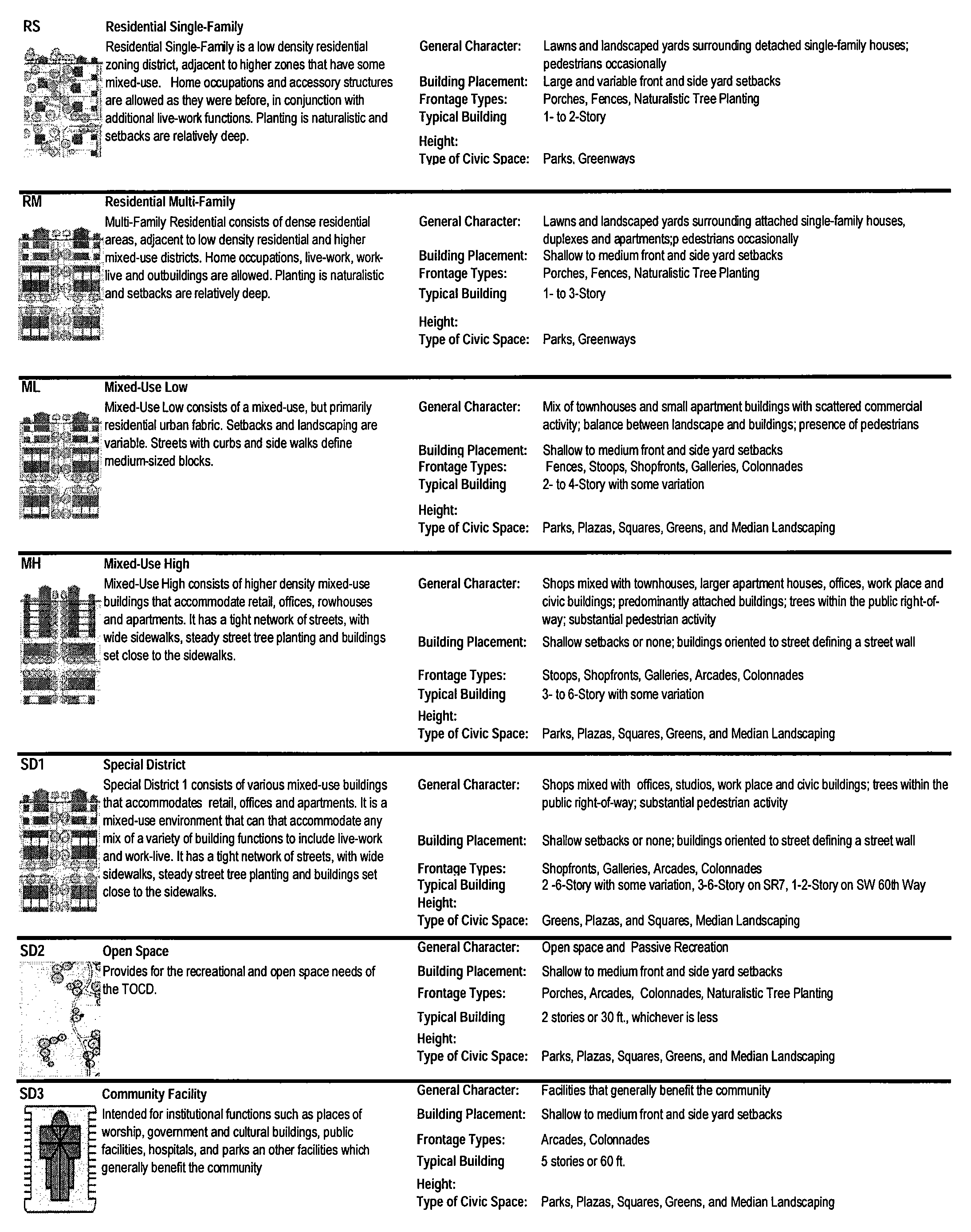 Miramar's Transit Oriented Corridor District Code (TOCD Code) is modeled after the SmartCode which is a form-based code, specifically created to facilitate mixed-use development, with access to transit stations or stops along existing and planned high performance transit service corridors.