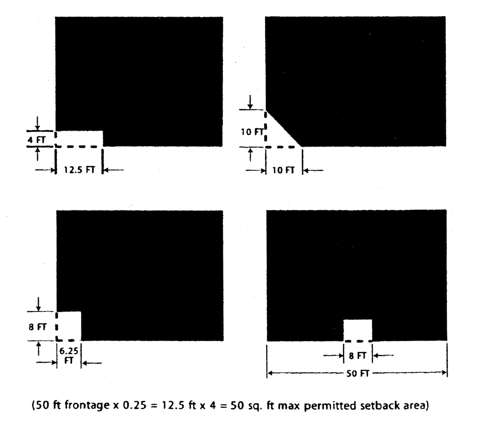 712.7.1.2. Buildings shall define the streetscape through the use of uniform setbacks along the build-to line for each block.