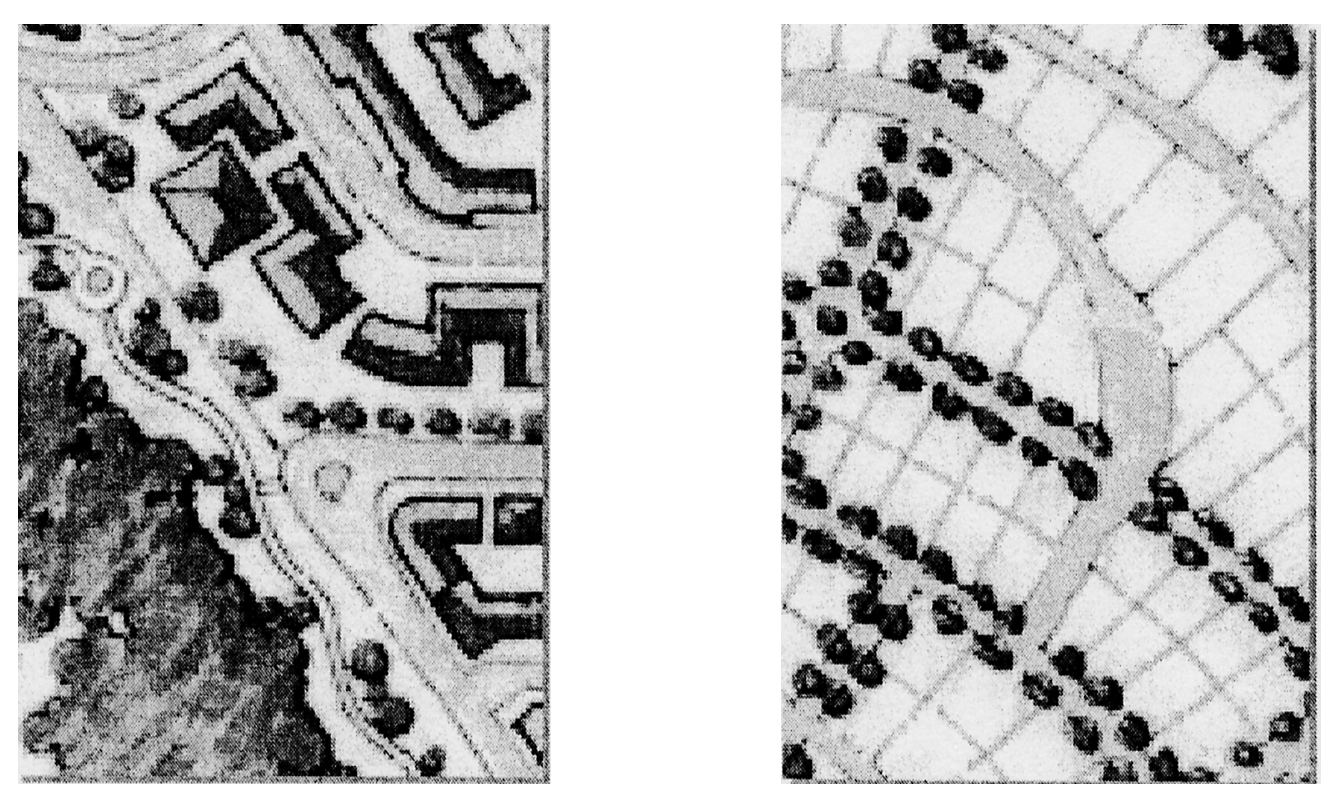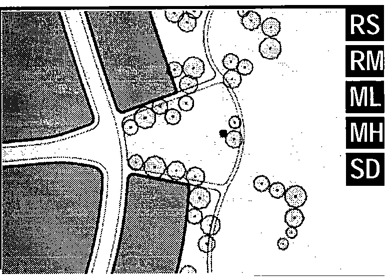Table 5: Building Disposition. This table approximates the location of the structure relative to the boundaries of each individual lot, establishing suitable basic building types for each district. This table shows six common types of street tree shapes and their appropriateness within each district.