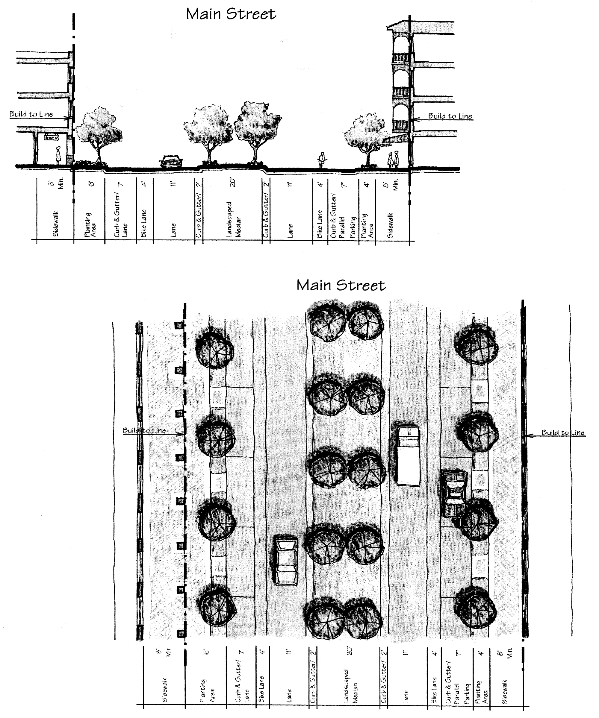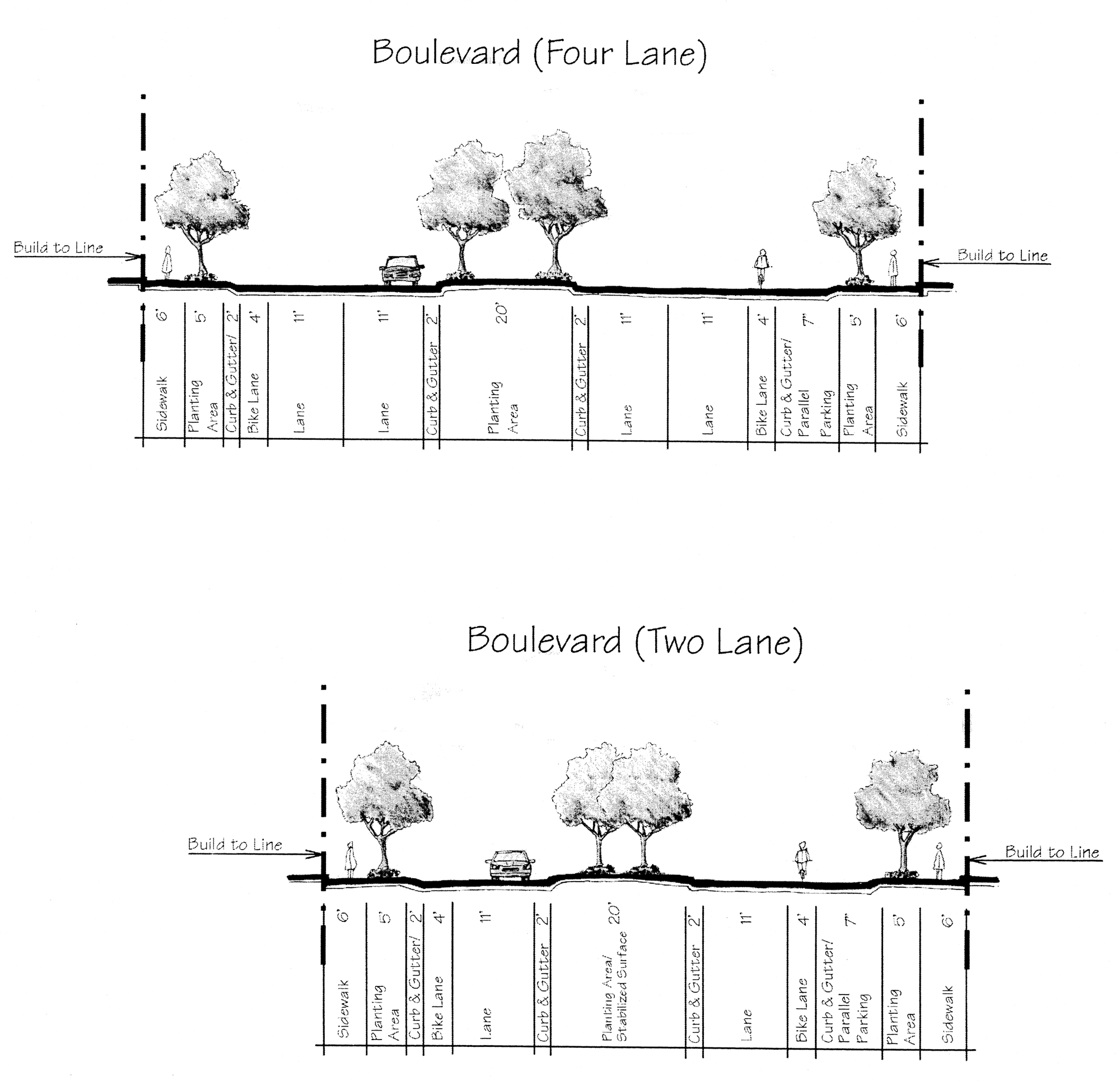 715.3.2.11. Depending on the street type, the planting area may contain the required landscaping, the required street trees, or a combination of both.