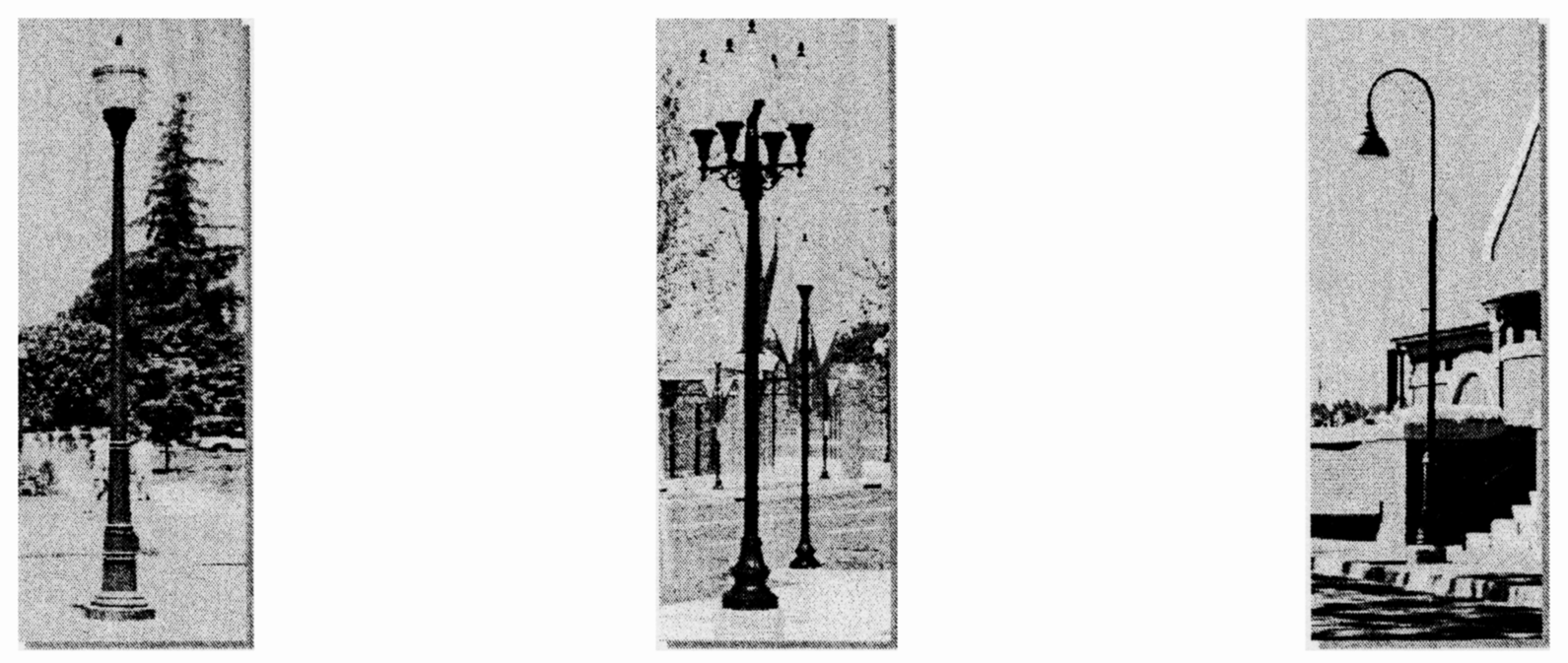 Table 3: Public Lighting. Lighting varies in brightness and also in the character of the fixture according to the district. The table shows five common types.