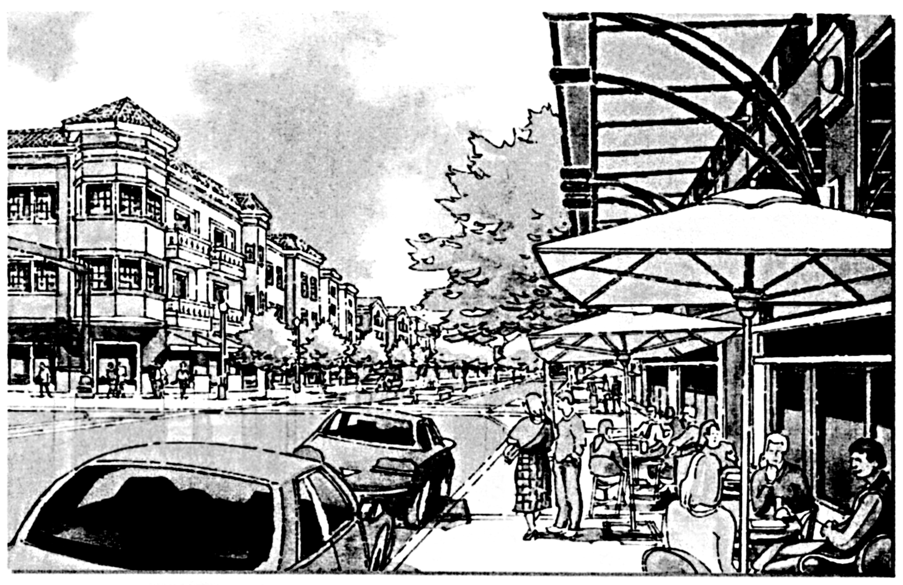 The TOCD Code also encourages commercial functions that include shop-fronts at street level, with residential units and office space above, wide pedestrian-friendly and multimodal sidewalks, rear on-site parking, and possibly public parking facilities.