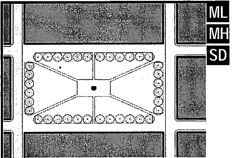 central mass at an entry plaza (see clearly defined building entry figure).