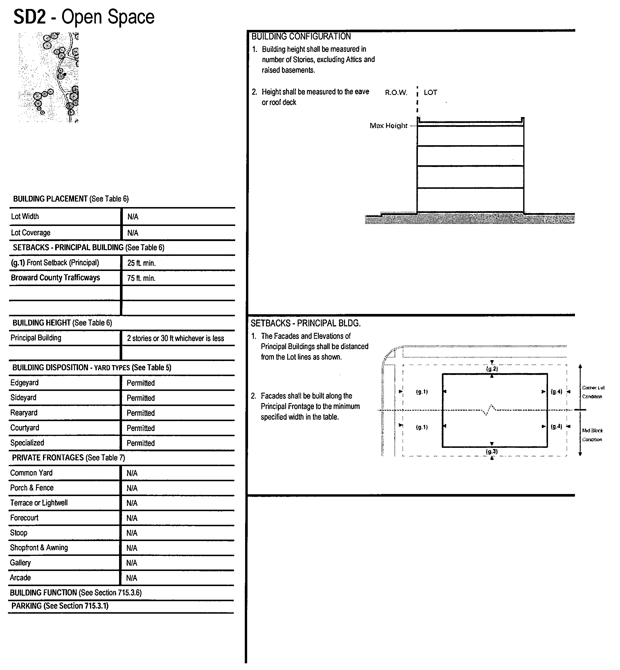 Building Heights shall conform to Table 6. Building Placement and Character. Building heights for buildings with Frontages on the State Road 7 Corridor shall conform to the TOCD-Mixed-Use High standards while building heights on the east side of Southwest 60th Terrace shall conform to the standards of Special District 1.