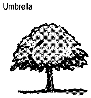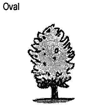 Table 4: Public Planting. This table shows six common types of street tree shapes and their appropriateness within each district.