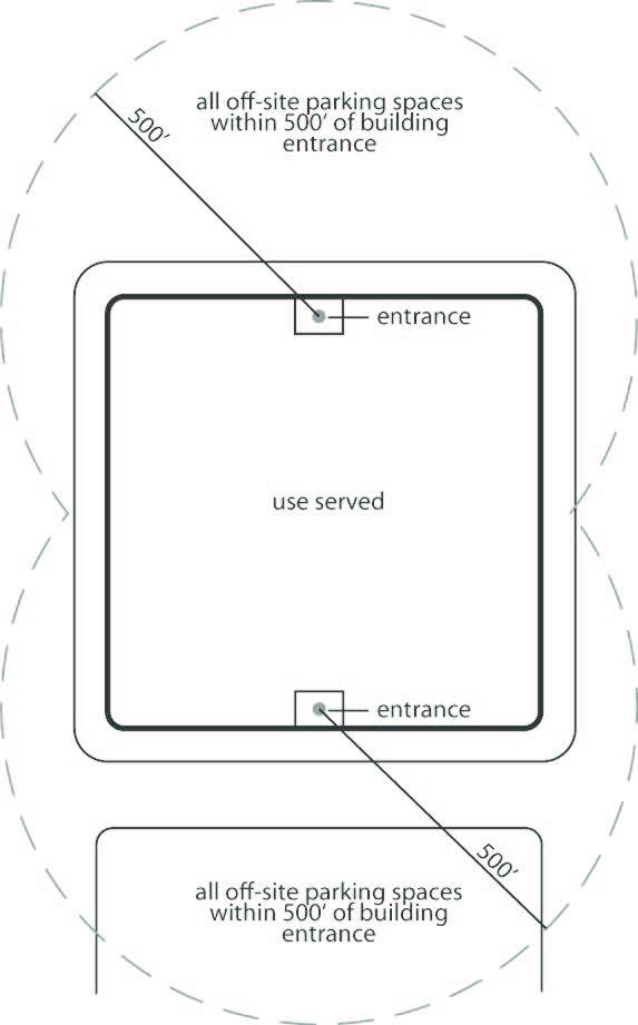 Required ADA parking spaces may be located off-site.
