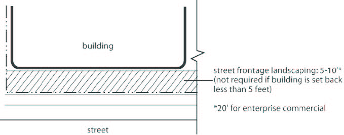 Enterprise commercial uses are subject to the buffer standards of this section except that required buffers must have a minimum width of 25 feet.