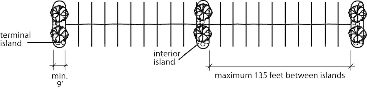 Interior parking lot landscape islands and other landscaped areas less than eight feet wide on any side must be landscaped with plants that can generally survive with available rainfall once established (although supplemental irrigation may be needed or desirable during summer months).